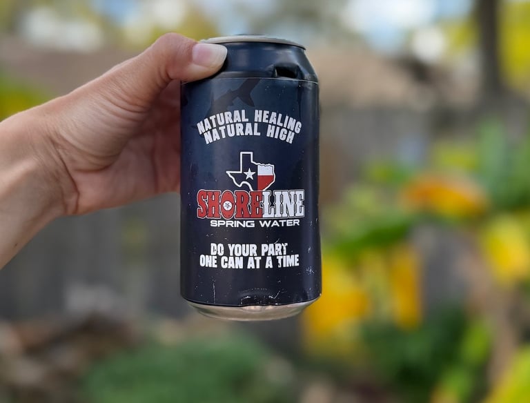 Texas Shoreline Water is packaged in aluminum cans that can be recycled forever. Unlike plastic bottles that release microplastics and toxins into our bodies and into the environment, aluminum stays out of the ocean and can be reused again and again.